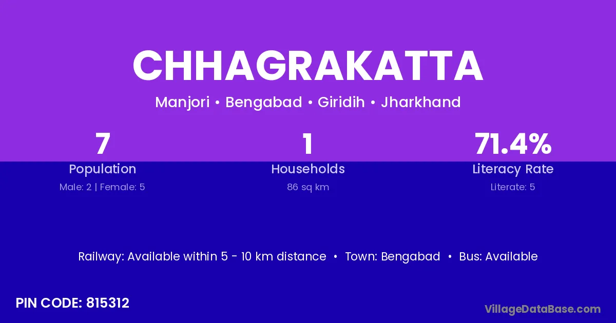 Chhagrakatta village has a total population of 7 people, of which 2 are males and 5 are females.