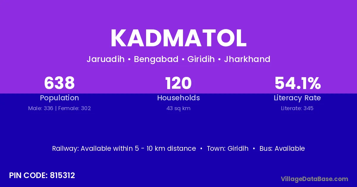 Giridih is the nearest town to Kadmatol village for major economic activities
