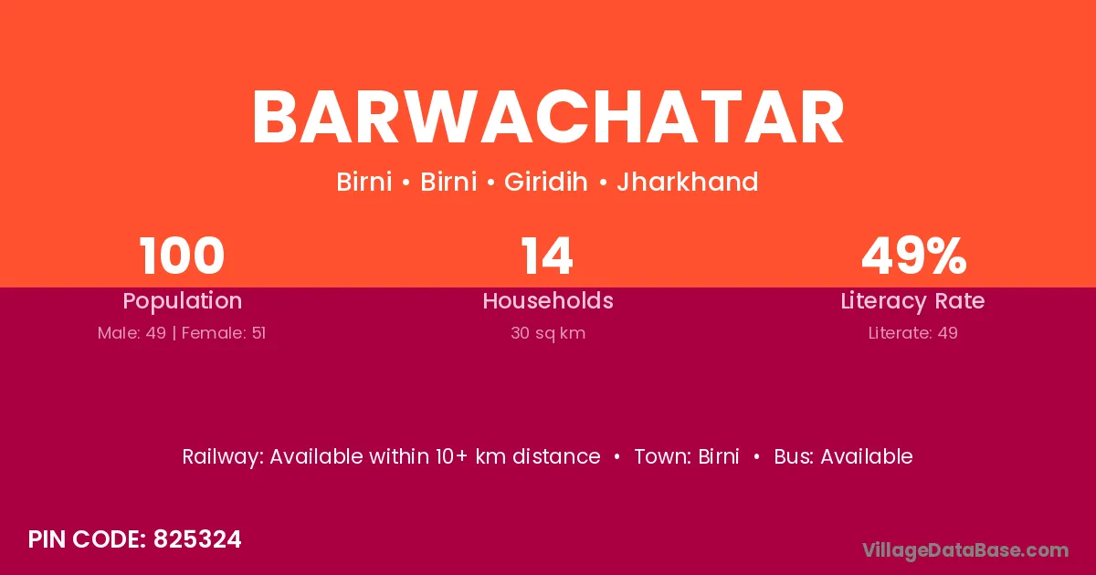 Barwachatar village has a total population of 100 people, of which 49 are males and 51 are females.