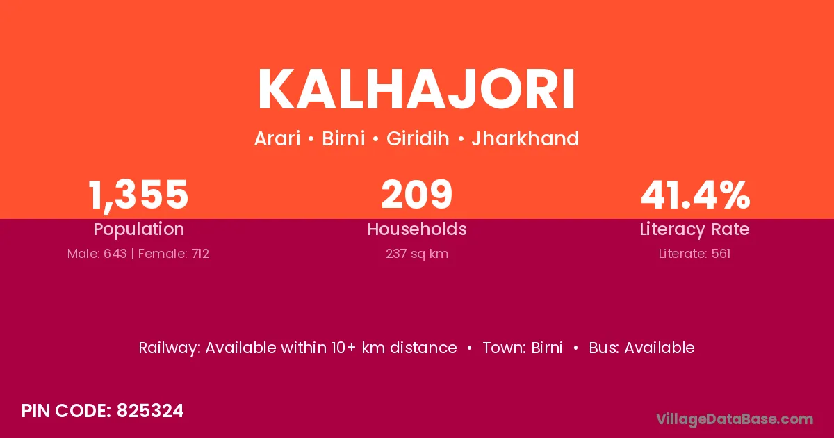 Kalhajori village has a total population of 1,355 people, of which 643 are males and 712 are females.