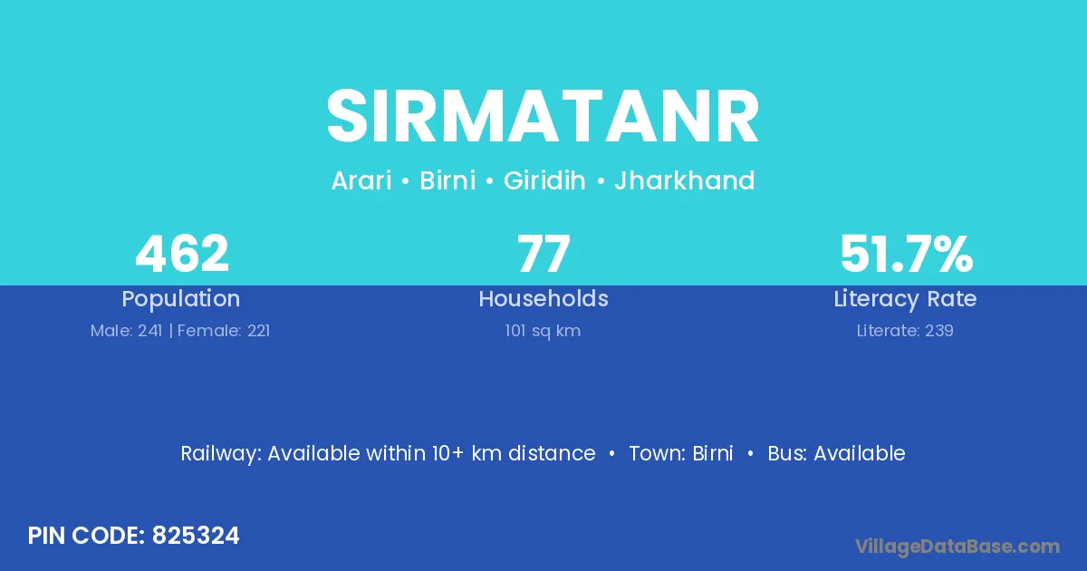 Sirmatanr village has a total population of 462 people, of which 241 are males and 221 are females.