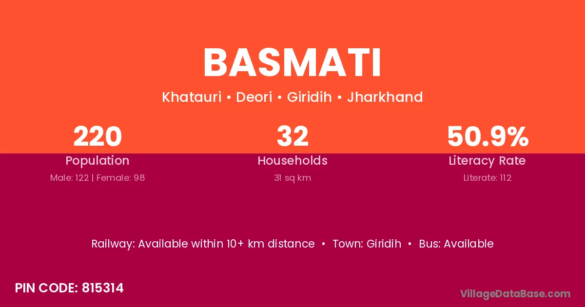 Giridih is the nearest town to Basmati village for major economic activities