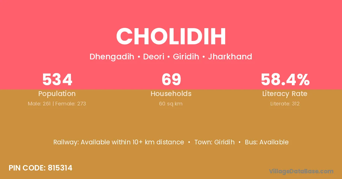 Giridih is the nearest town to Cholidih village for major economic activities