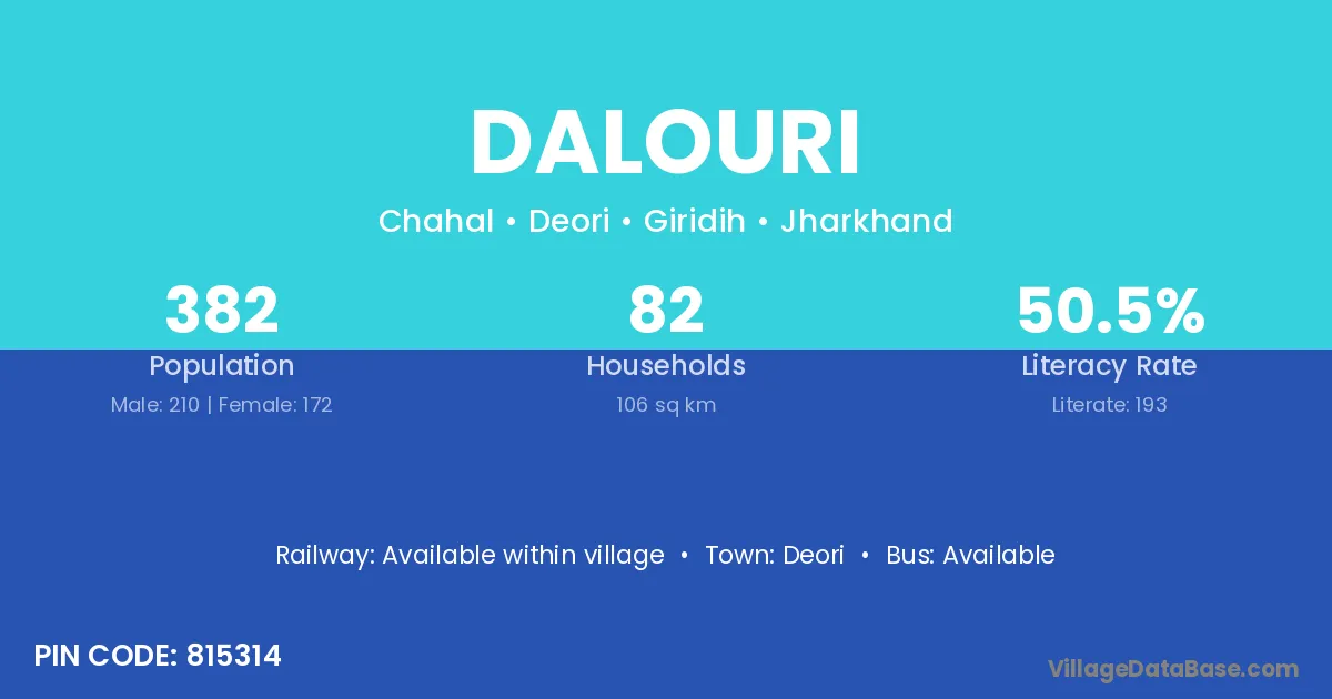 Dalouri village has a total population of 382 people, of which 210 are males and 172 are females.