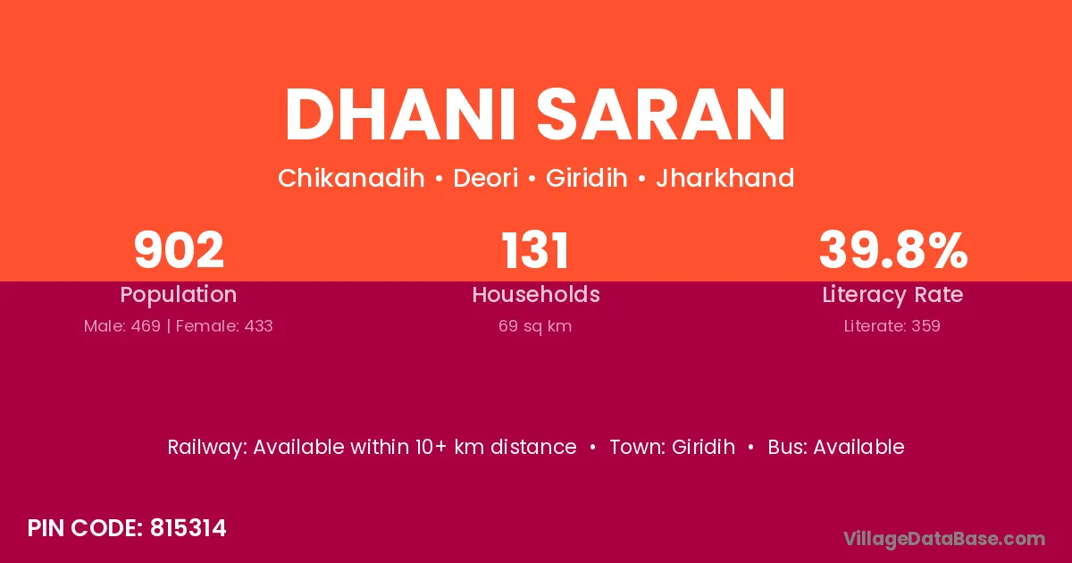 Giridih is the nearest town to Dhani Saran village for major economic activities