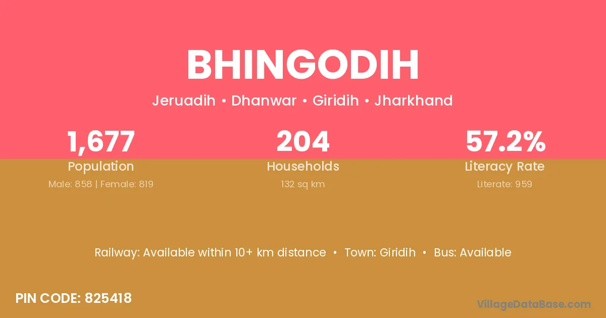 Giridih is the nearest town to Bhingodih village for major economic activities