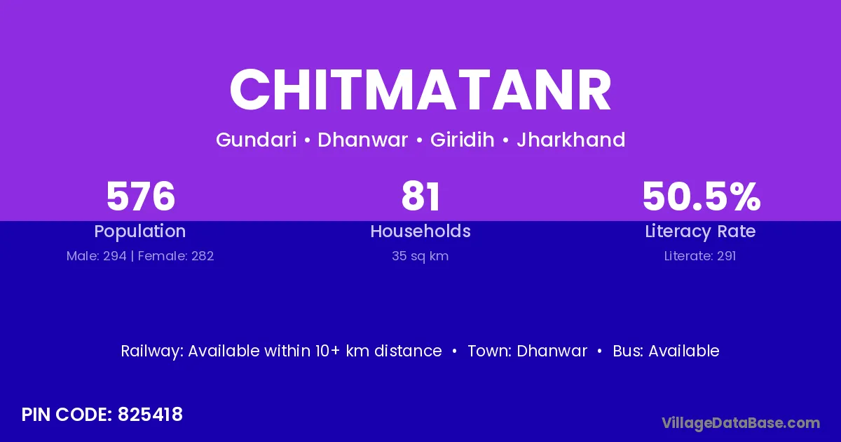 According to Census 2011 information, the village code of Chitmatanr village is 825418.
