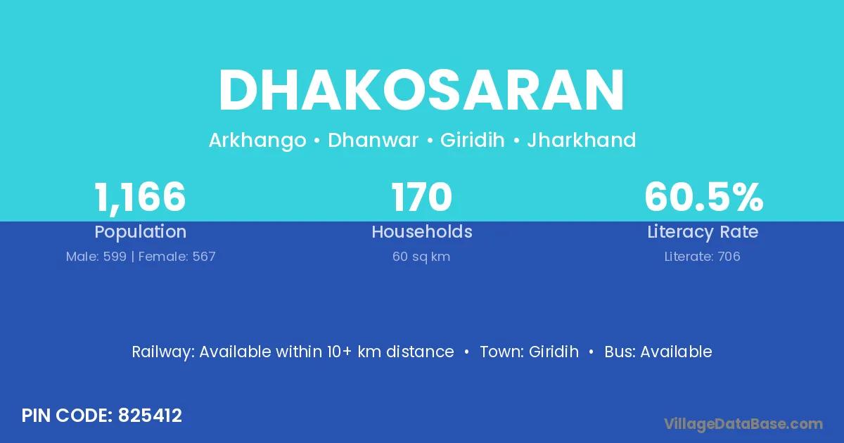 Giridih is the nearest town to Dhakosaran village for major economic activities