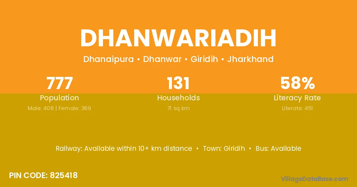 Giridih is the nearest town to Dhanwariadih village for major economic activities