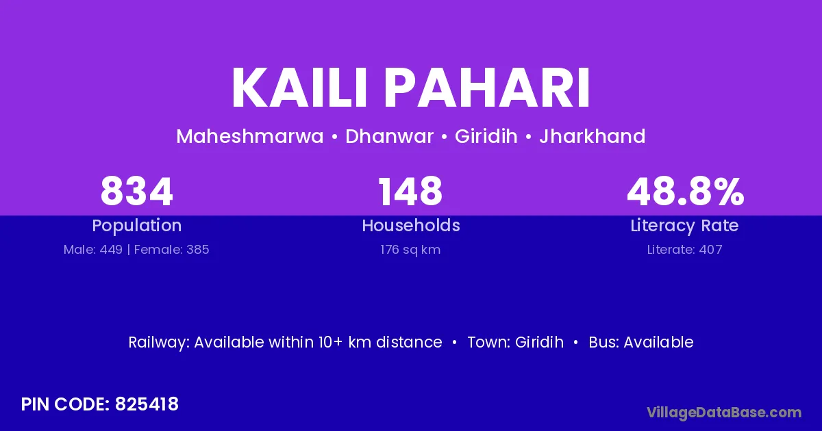 Giridih is the nearest town to Kaili Pahari village for major economic activities