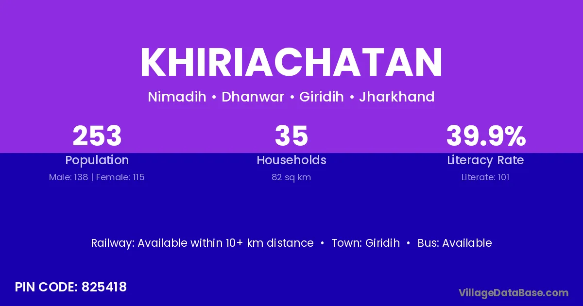 Giridih is the nearest town to Khiriachatan village for major economic activities