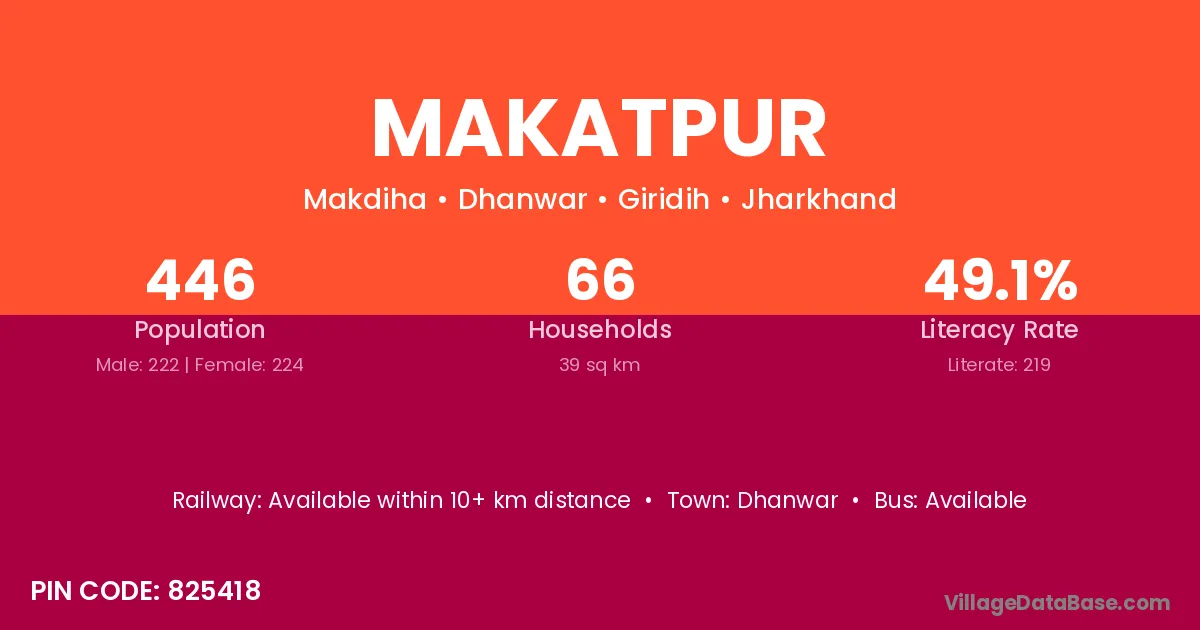 Makatpur village has a total population of 446 people, of which 222 are males and 224 are females.