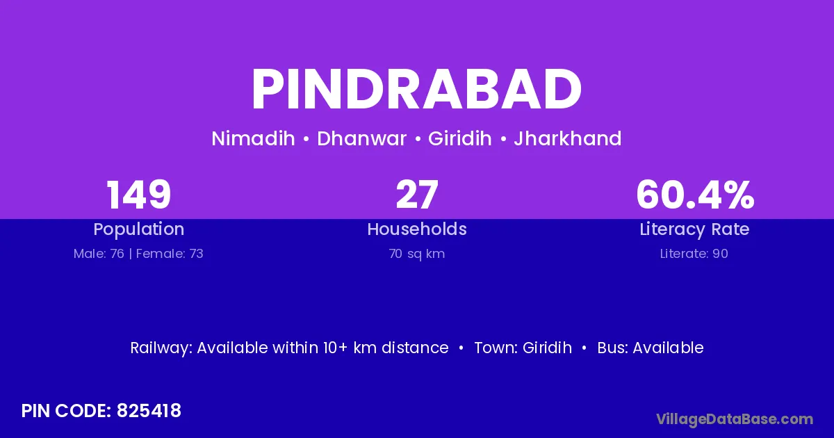 Giridih is the nearest town to Pindrabad village for major economic activities