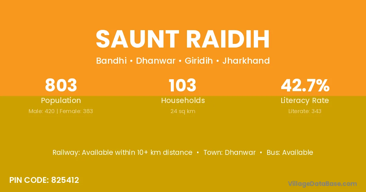 Saunt Raidih village has a total population of 803 people, of which 420 are males and 383 are females.