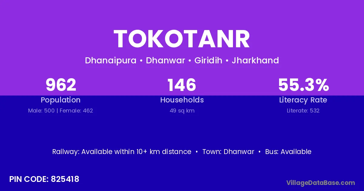 Dhanwar is the nearest town to Tokotanr village for major economic activities