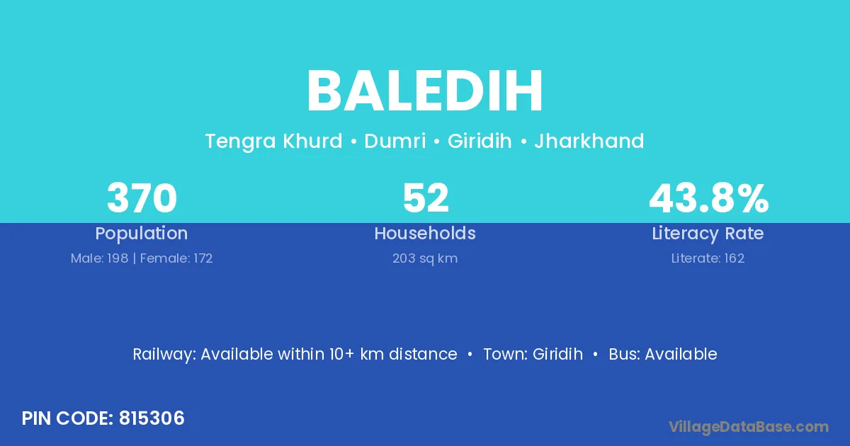 Giridih is the nearest town to Baledih village for major economic activities