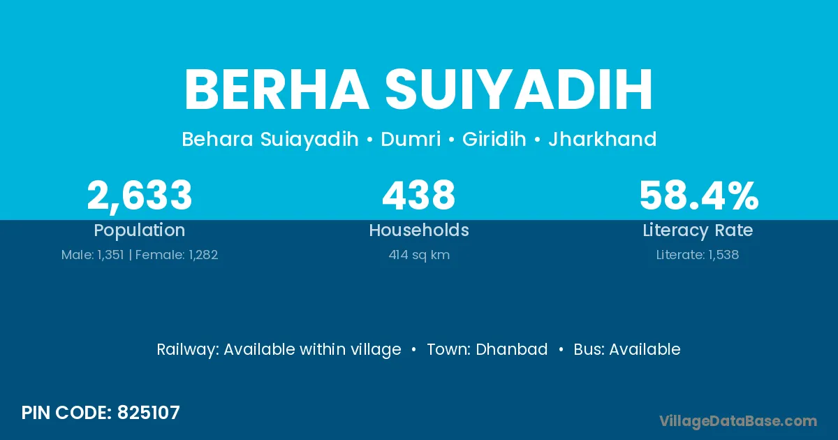 Dhanbad is the nearest town to Berha Suiyadih village for major economic activities