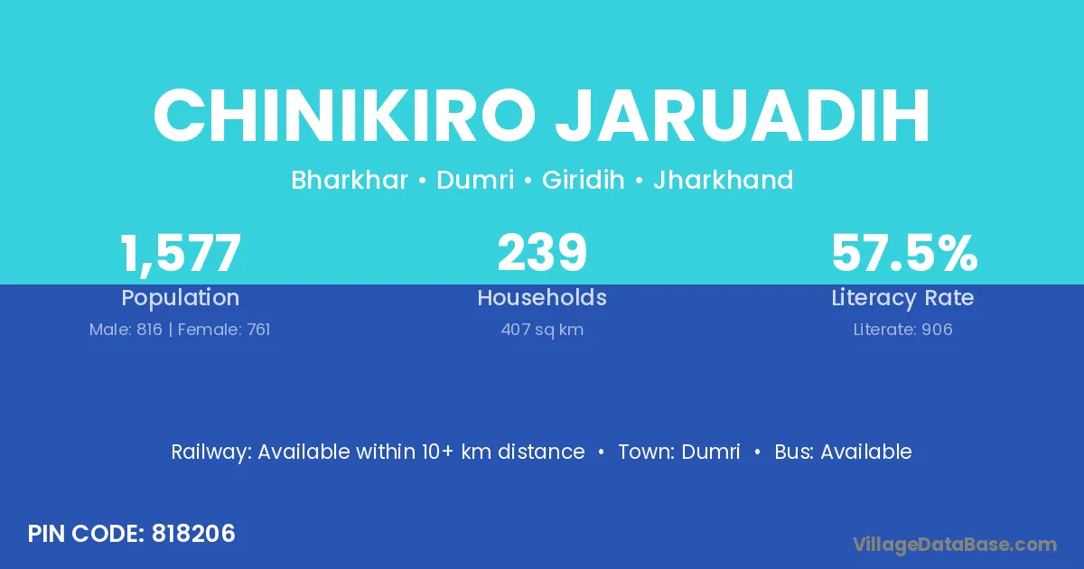 Chinikiro Jaruadih village has a total population of 1,577 people, of which 816 are males and 761 are females.