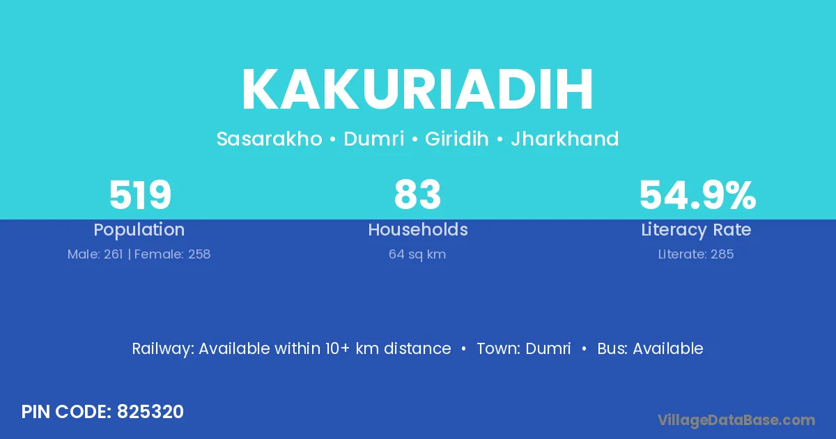 Kakuriadih village has a total population of 519 people, of which 261 are males and 258 are females.