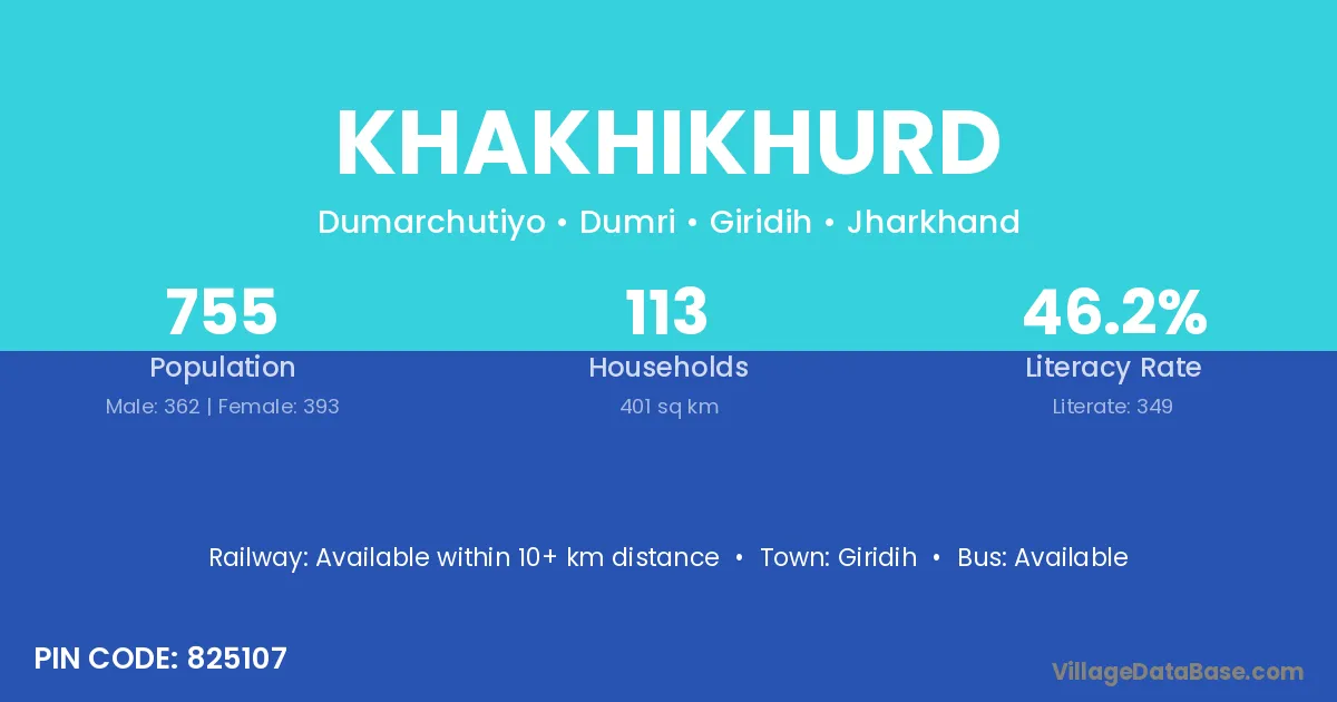 Giridih is the nearest town to Khakhikhurd village for major economic activities