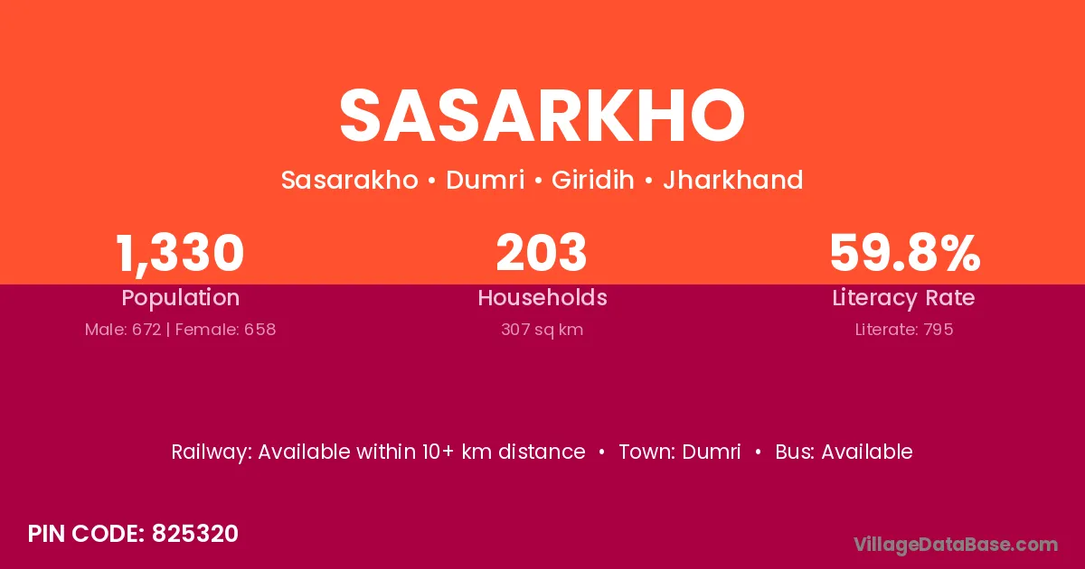 According to Census 2011 information, the village code of Sasarkho village is 825320.