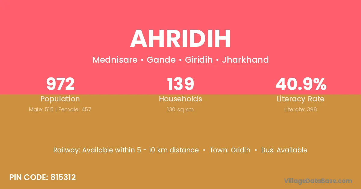 Gridih is the nearest town to Ahridih village for major economic activities