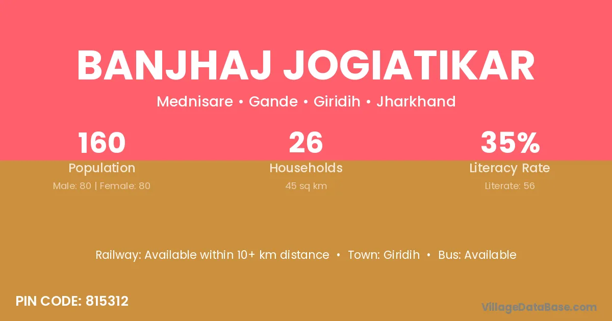 Banjhaj Jogiatikar village is located in the Gande Subdivision of the Giridih district in Jharkhand .