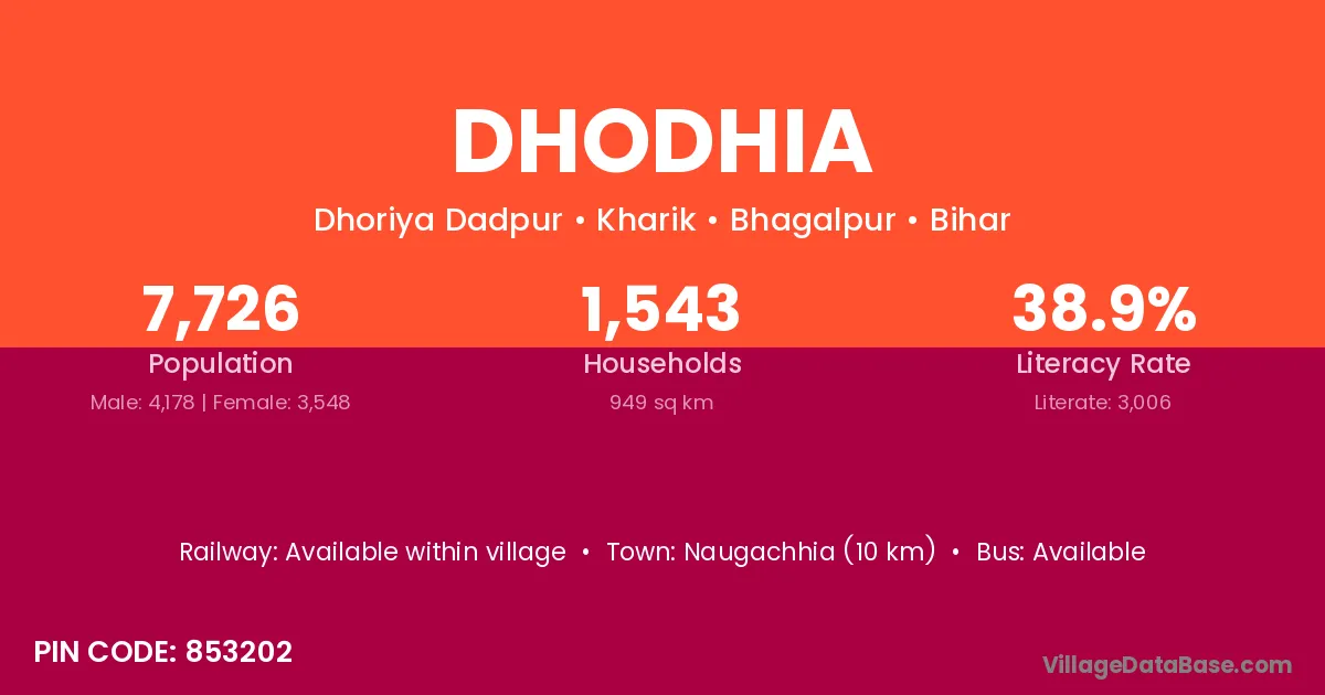 Giridih is the nearest town to Dhodhia village for major economic activities