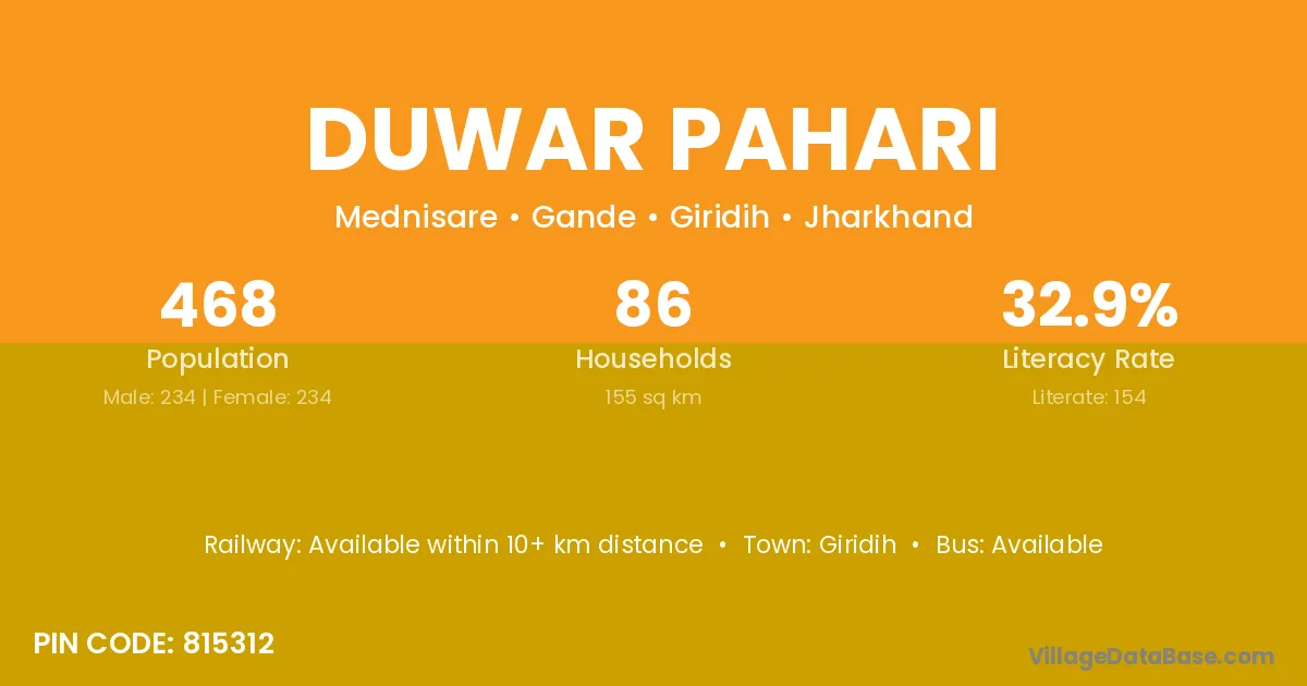 Giridih is the nearest town to Duwar Pahari village for major economic activities