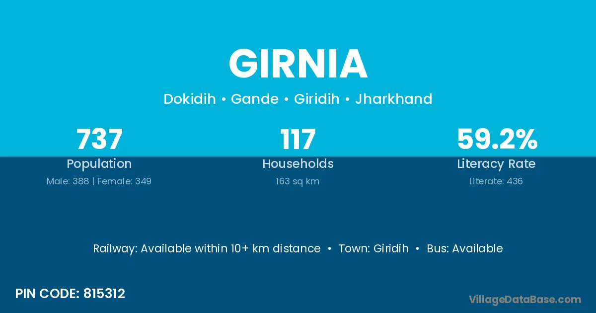 Giridih is the nearest town to Girnia village for major economic activities