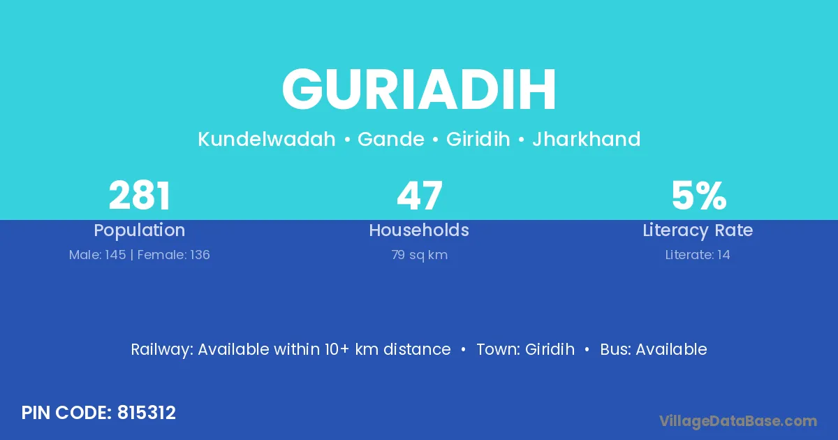 Guriadih village has a total population of 281 people, of which 145 are males and 136 are females.