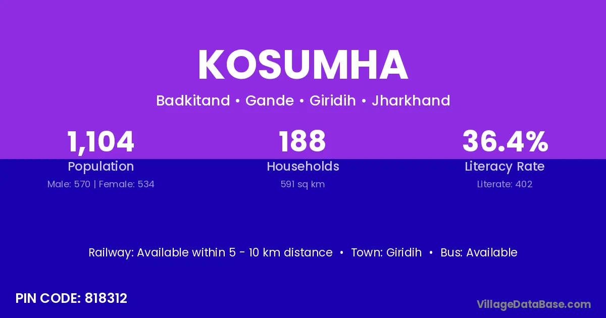 Giridih is the nearest town to Kosumha village for major economic activities
