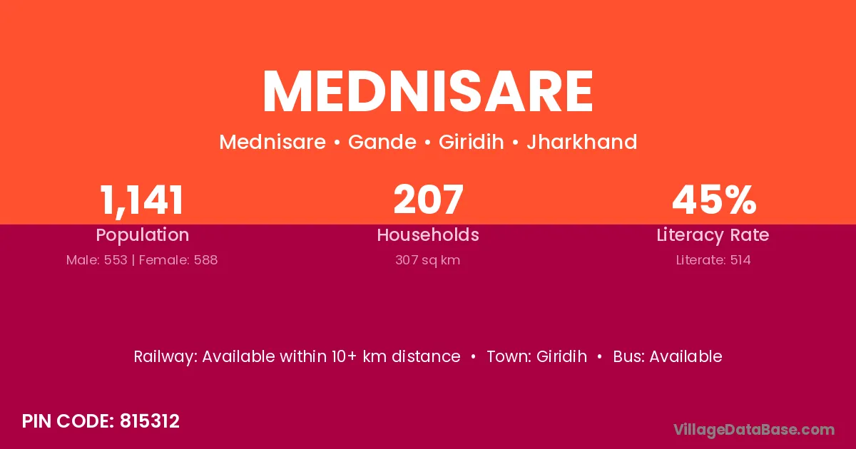 Giridih is the nearest town to Mednisare village for major economic activities