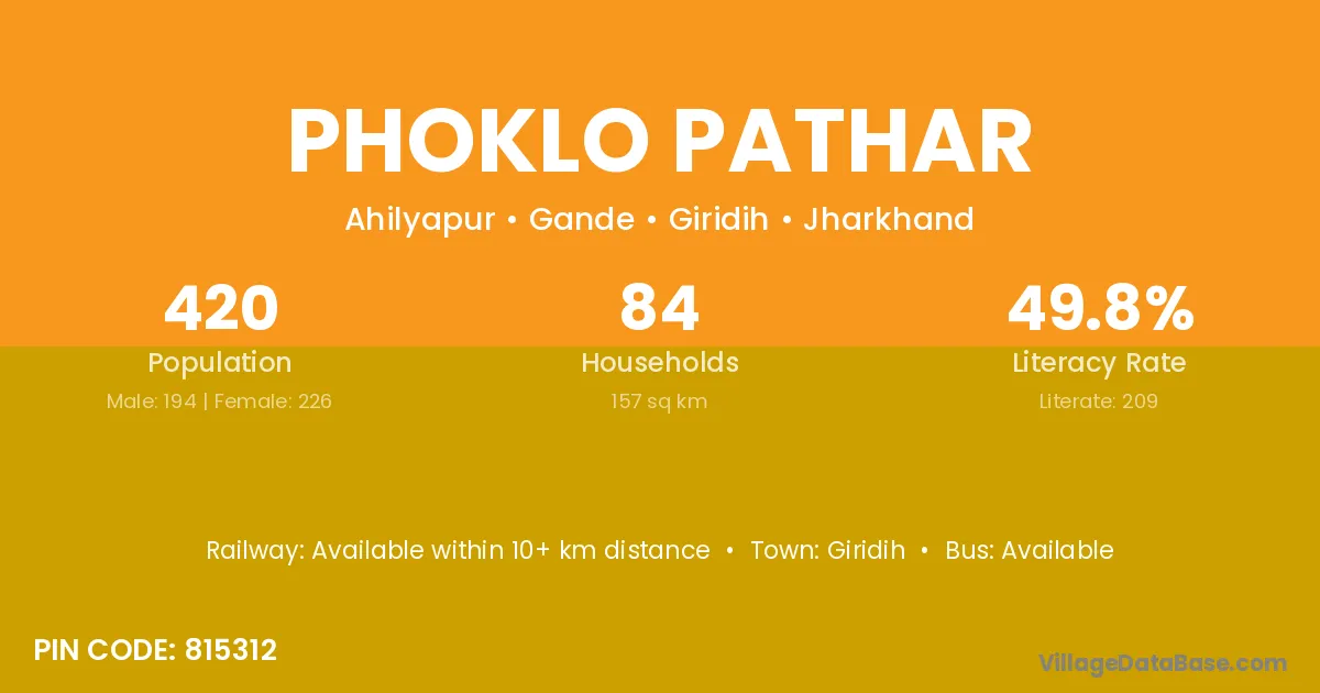 Giridih is the nearest town to Phoklo Pathar village for major economic activities