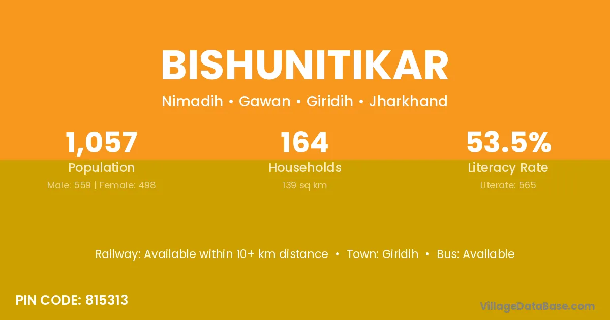 Giridih is the nearest town to Bishunitikar village for major economic activities