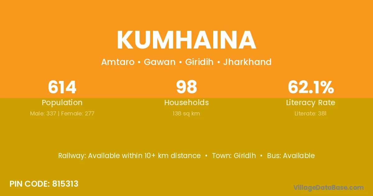 Giridih is the nearest town to Kumhaina village for major economic activities