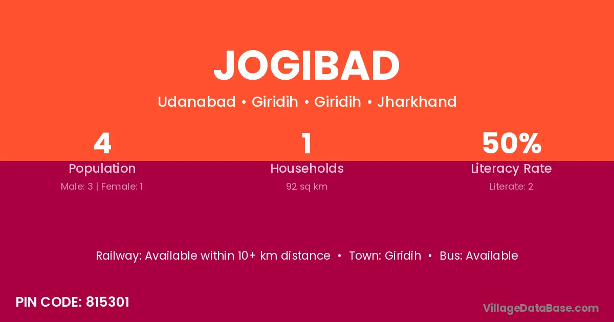 Jogibad village has a total population of 4 people, of which 3 are males and 1 are females.