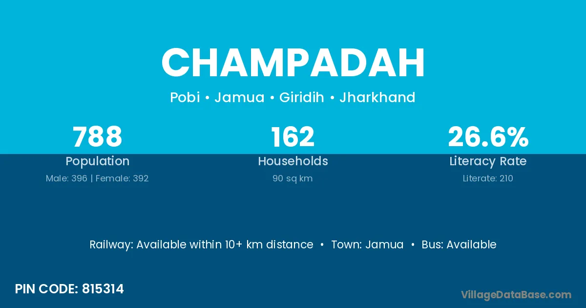 Jamua is the nearest town to Champadah village for major economic activities