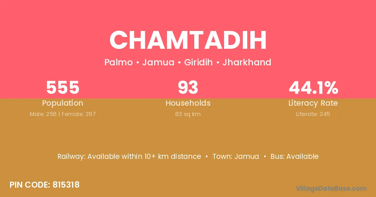 Chamtadih village has a total population of 555 people, of which 258 are males and 297 are females.