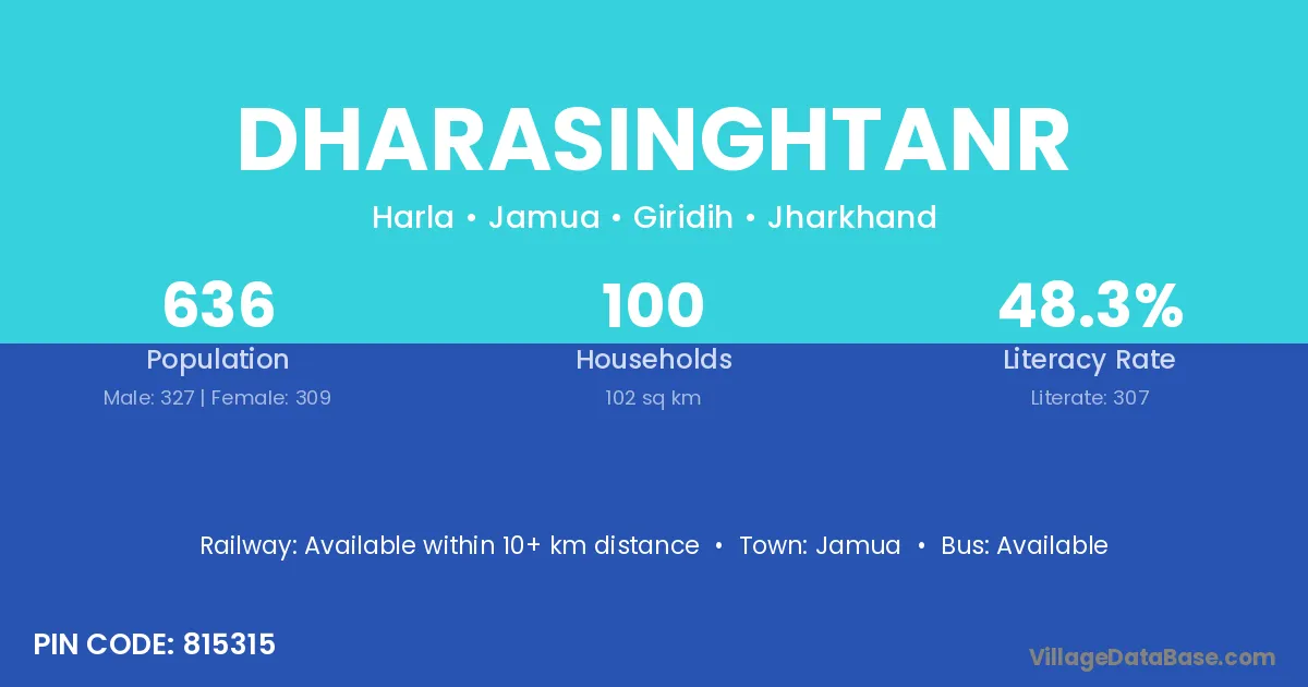 Jamua is the nearest town to Dharasinghtanr village for major economic activities