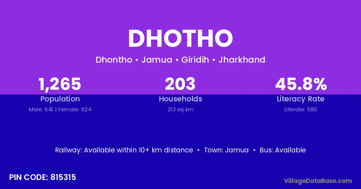 Dhotho village has a total population of 1,265 people, of which 641 are males and 624 are females.