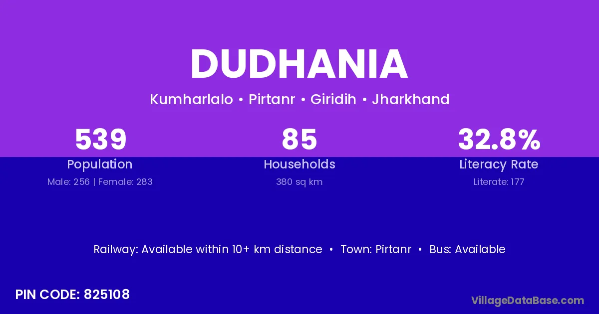 According to Census 2011 information, the village code of Dudhania village is 815314.