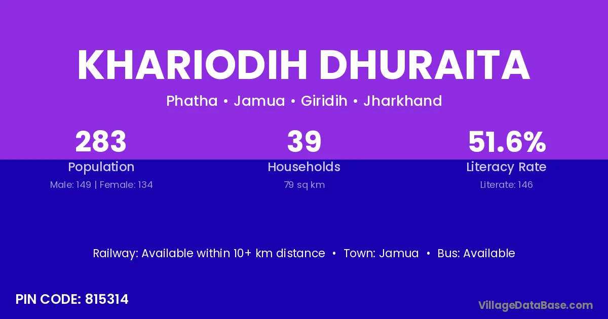 Jamua is the nearest town to Khariodih Dhuraita village for major economic activities
