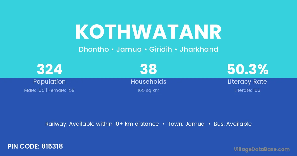 Jamua is the nearest town to Kothwatanr village for major economic activities
