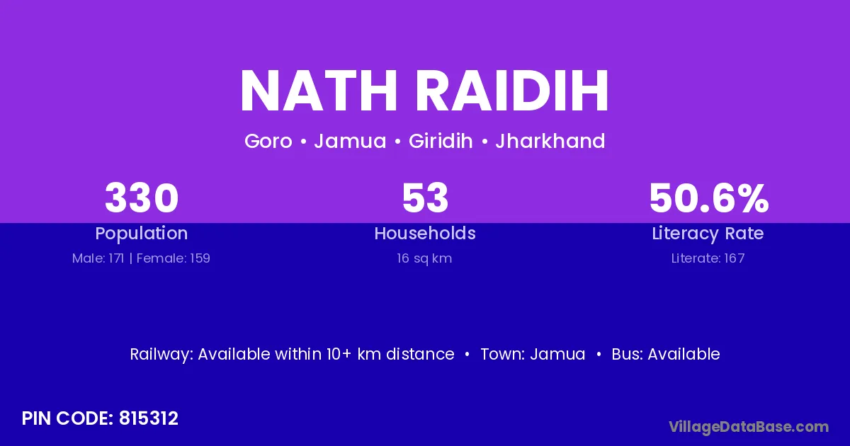 Jamua is the nearest town to Nath Raidih village for major economic activities