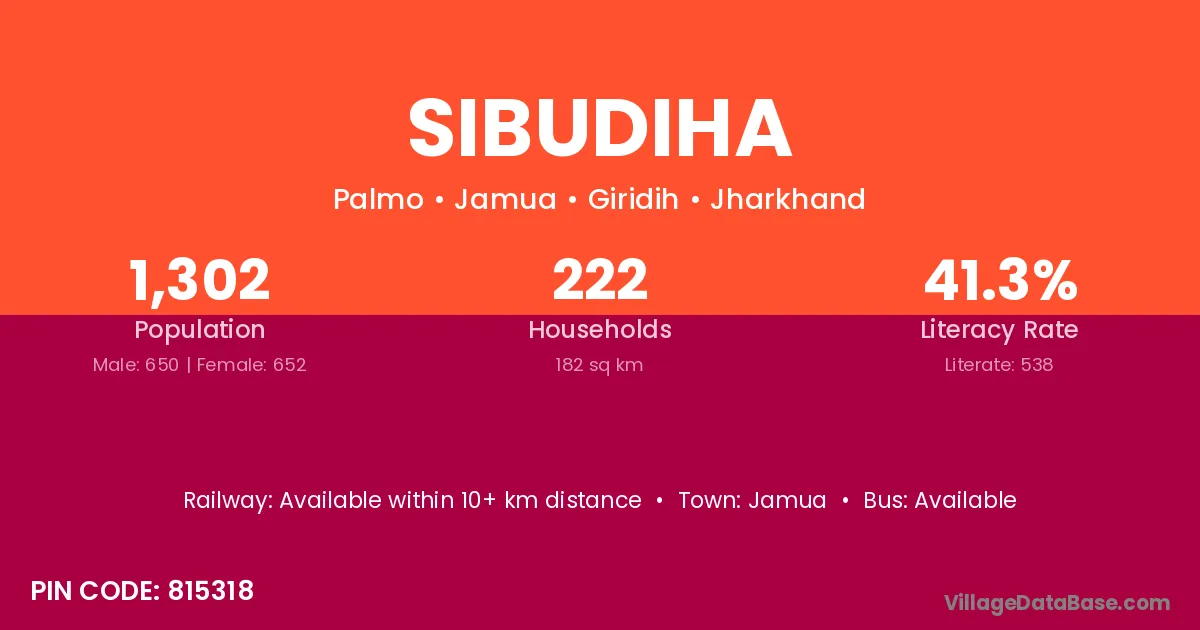 Sibudiha village has a total population of 1,302 people, of which 650 are males and 652 are females.