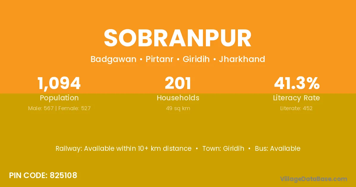 Giridih is the nearest town to Sobranpur village for major economic activities