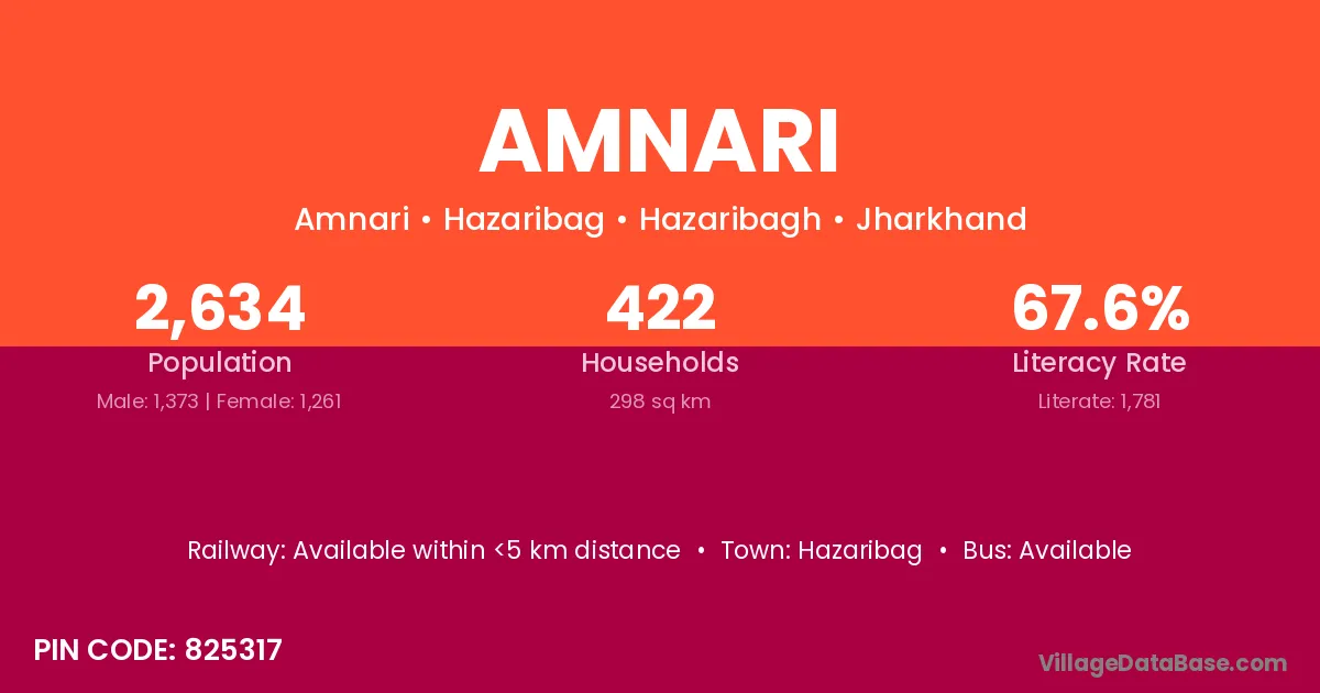 According to Census 2011 information, the village code of Amnari village is 825320.