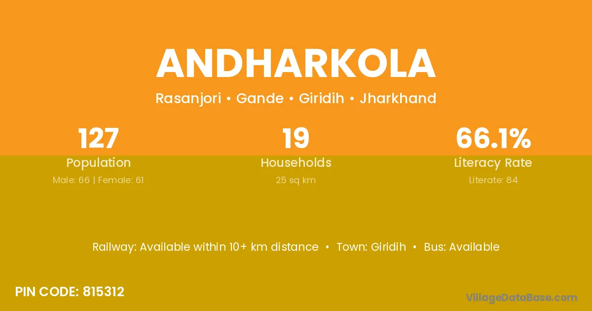Ranchi is the nearest town to Andharkola village for major economic activities