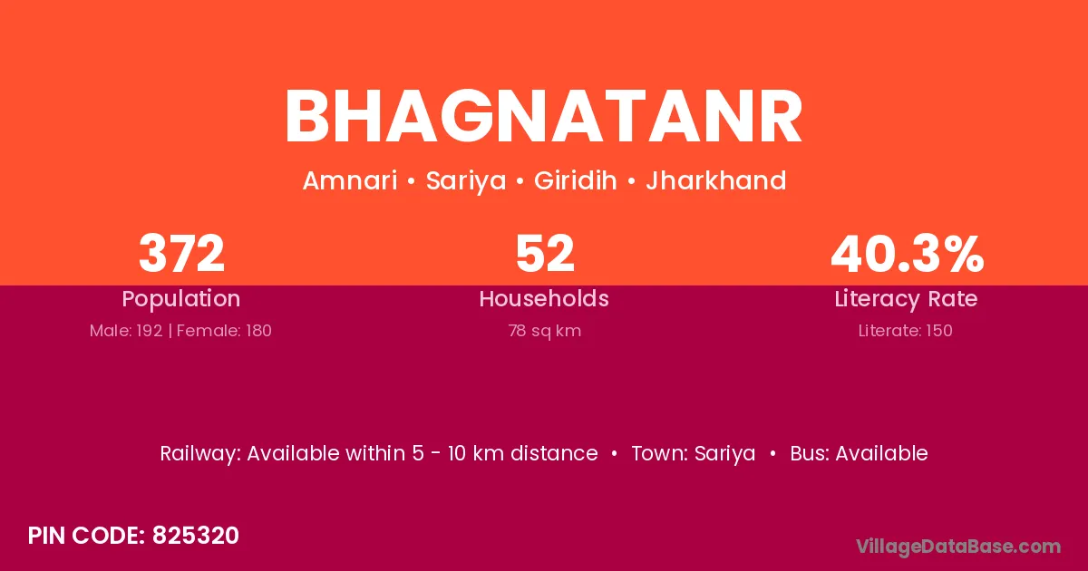 Bhagnatanr village has a total population of 372 people, of which 192 are males and 180 are females.